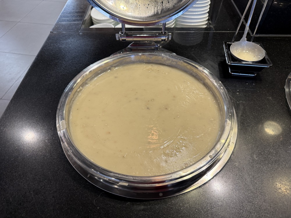 こちらは汁物のコーナーです。マッシュルームスープ、味噌汁などが並びます。