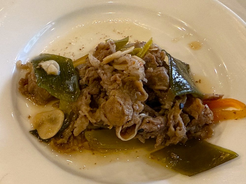 今回頂いた料理の中で個人的なお気に入りの一品はプルコギです。牛肉は柔らかく、長ネギの甘みとニンニクの風味が効いた絶品です。これはおかわりすること必至でしょう。