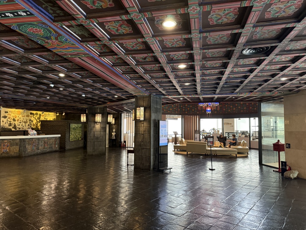 会場の「オンセミロ」は1階にあります。館内のインテリアはこのように韓国の伝統的な様式となっています。