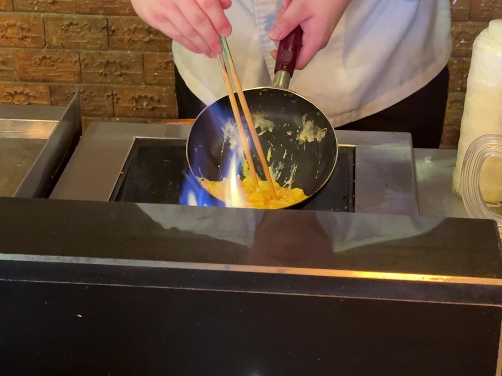 すぐ隣のライブキッチンでは、スタッフがオーダーによりオムレツを調理してくれます。