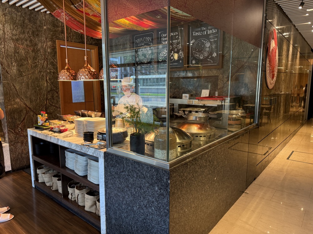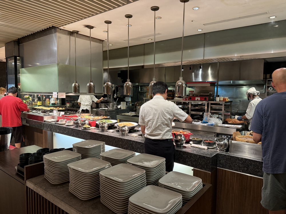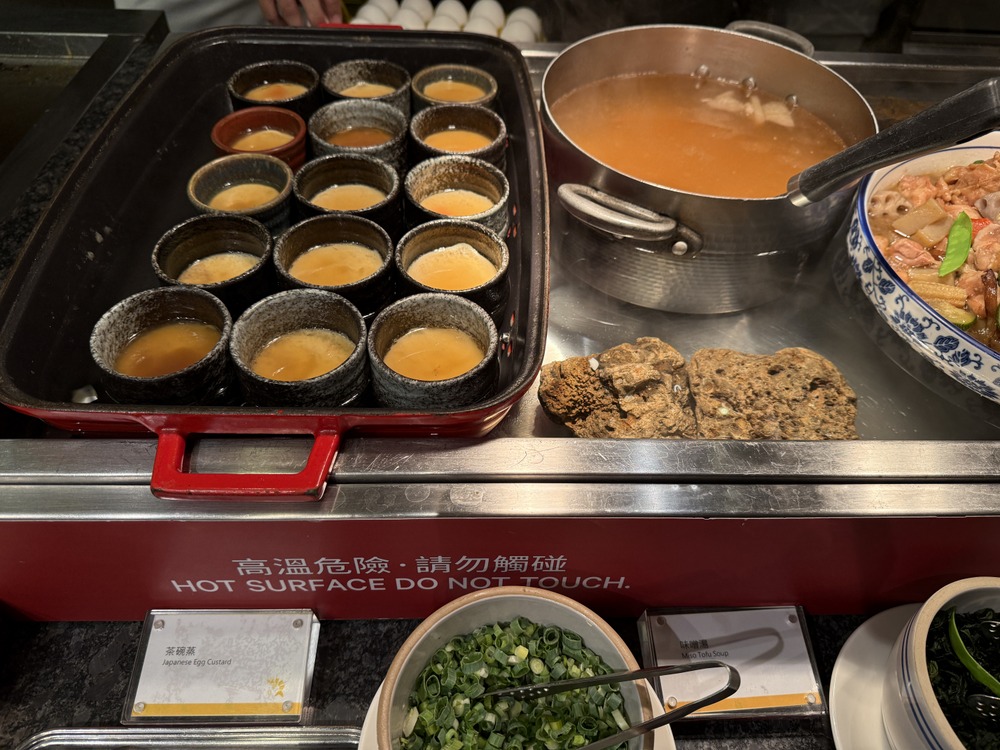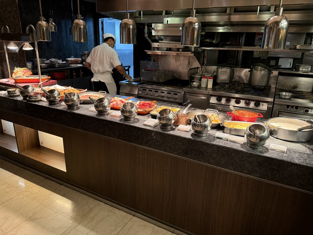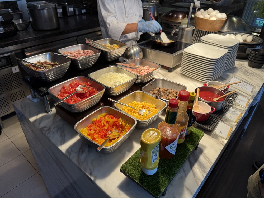温製料理の締めくくりはエッグステーションです。オープンキッチンから少し離れた奥の場所にあり、ちょっと分かりにくいです。