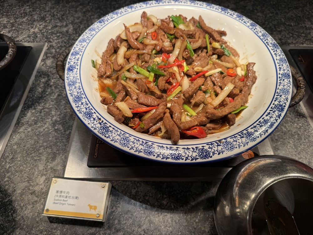 牛肉とネギの炒め物です。牛肉は台湾産。