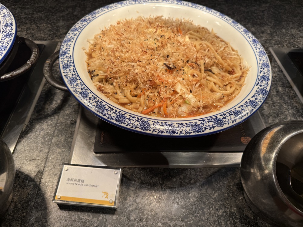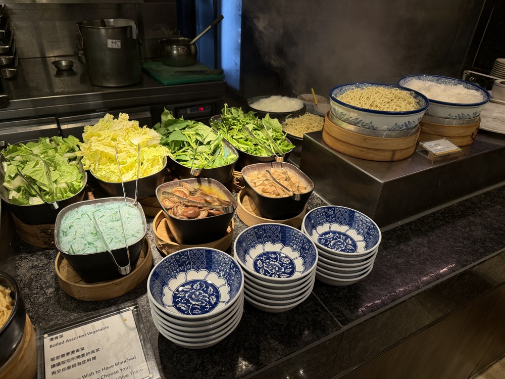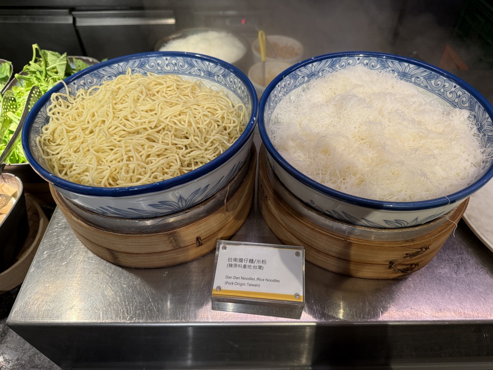 隣はヌードルコーナーです。具材と麺はお好みで選択し、スタッフに調理してもらいます。