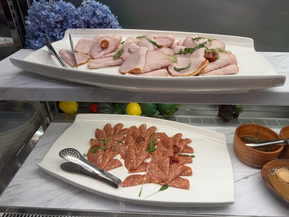 肉、魚系の冷製料理です。ハムなどの定番料理が並びます。