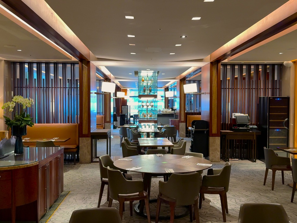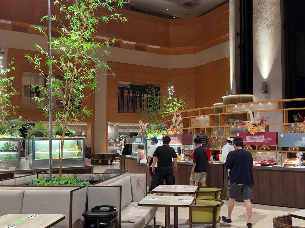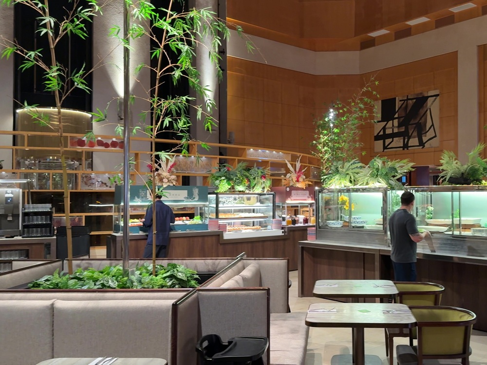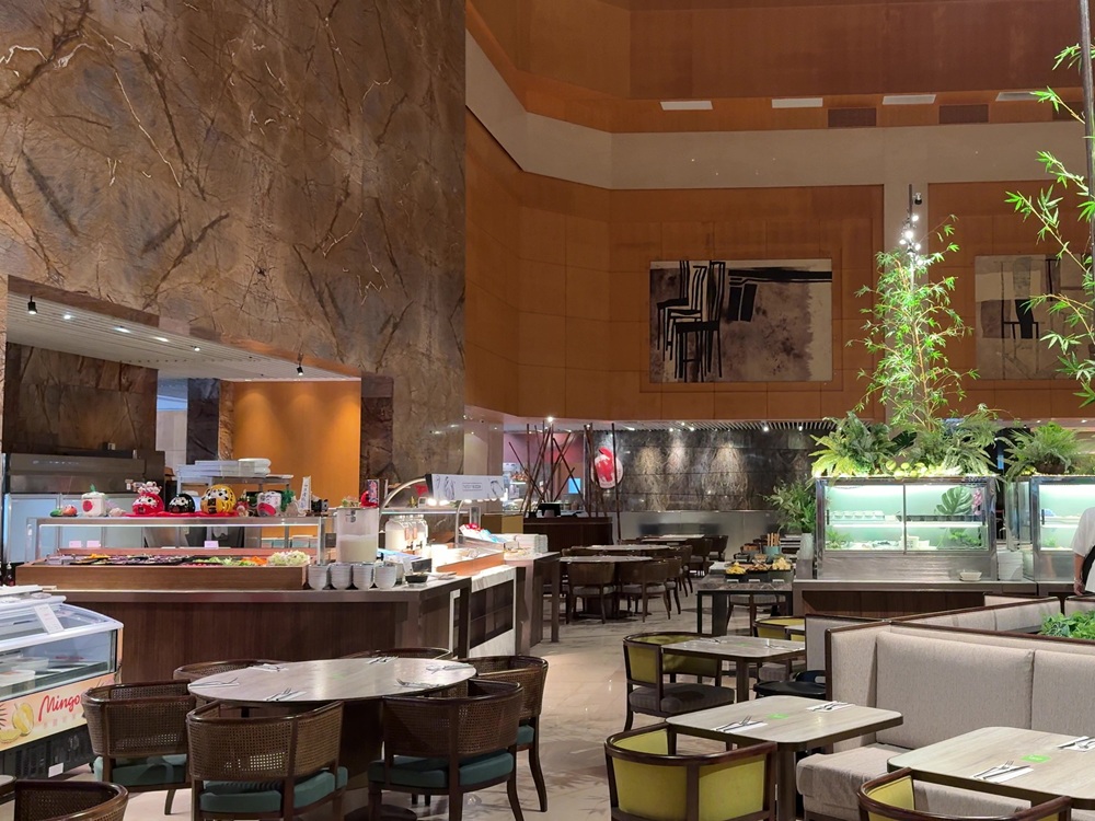 今回は朝食付きのプランではなかったため、受付で部屋付けの伝票にサインして入店。スタッフの案内で席に着きます。